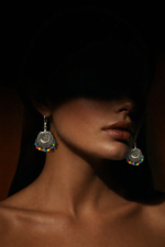 Bohemian crescent-shaped earrings adorned with colorful bead accents and intricate silver detailing. A joyful, free-spirited design that adds charm, movement, and a playful touch to any look.
