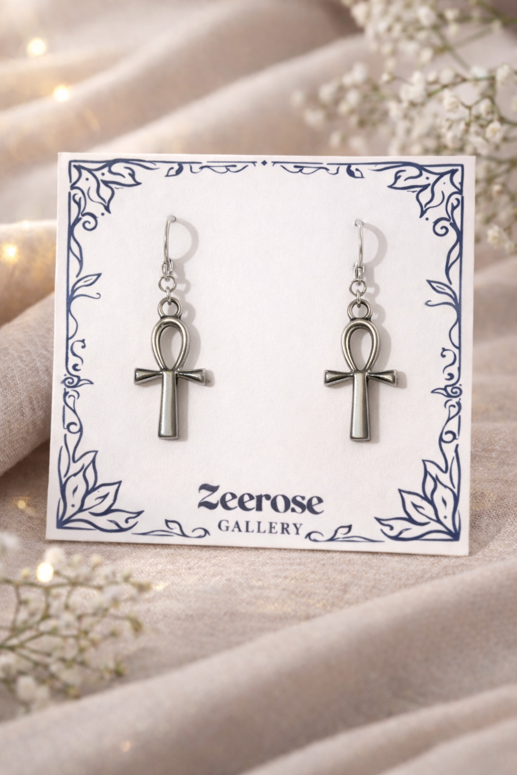 Elegant Ankh earrings inspired by the ancient symbol of life and eternity. A minimalist yet meaningful design that adds a timeless and spiritual touch to any look.