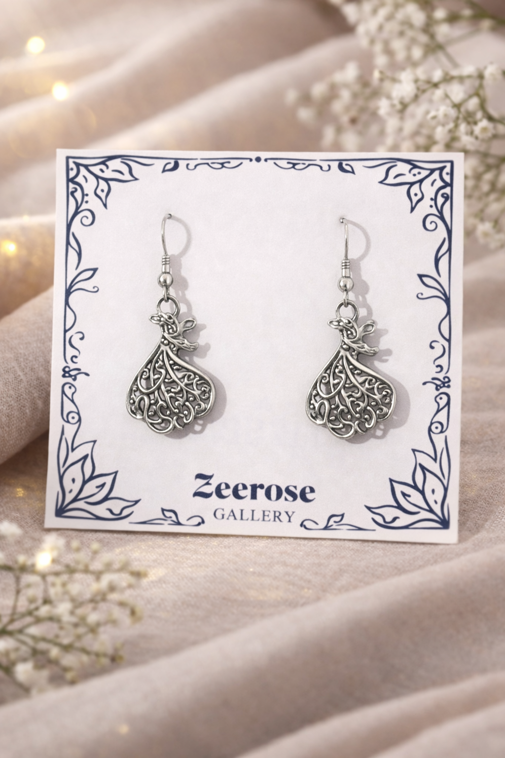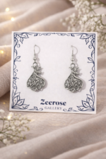 Delicate silver-tone drop earrings featuring intricate filigree detailing inspired by classic artistry. A lightweight, elegant design that adds timeless charm and subtle sophistication to any look.