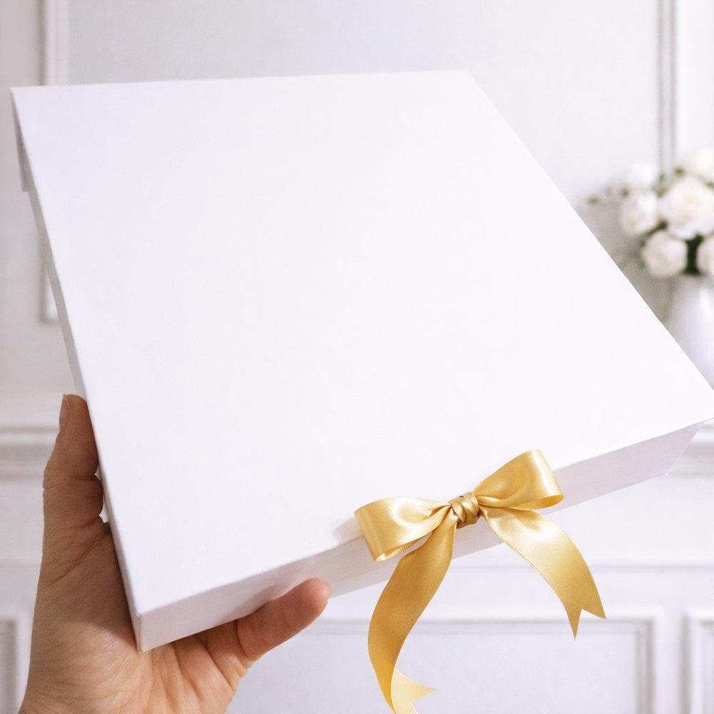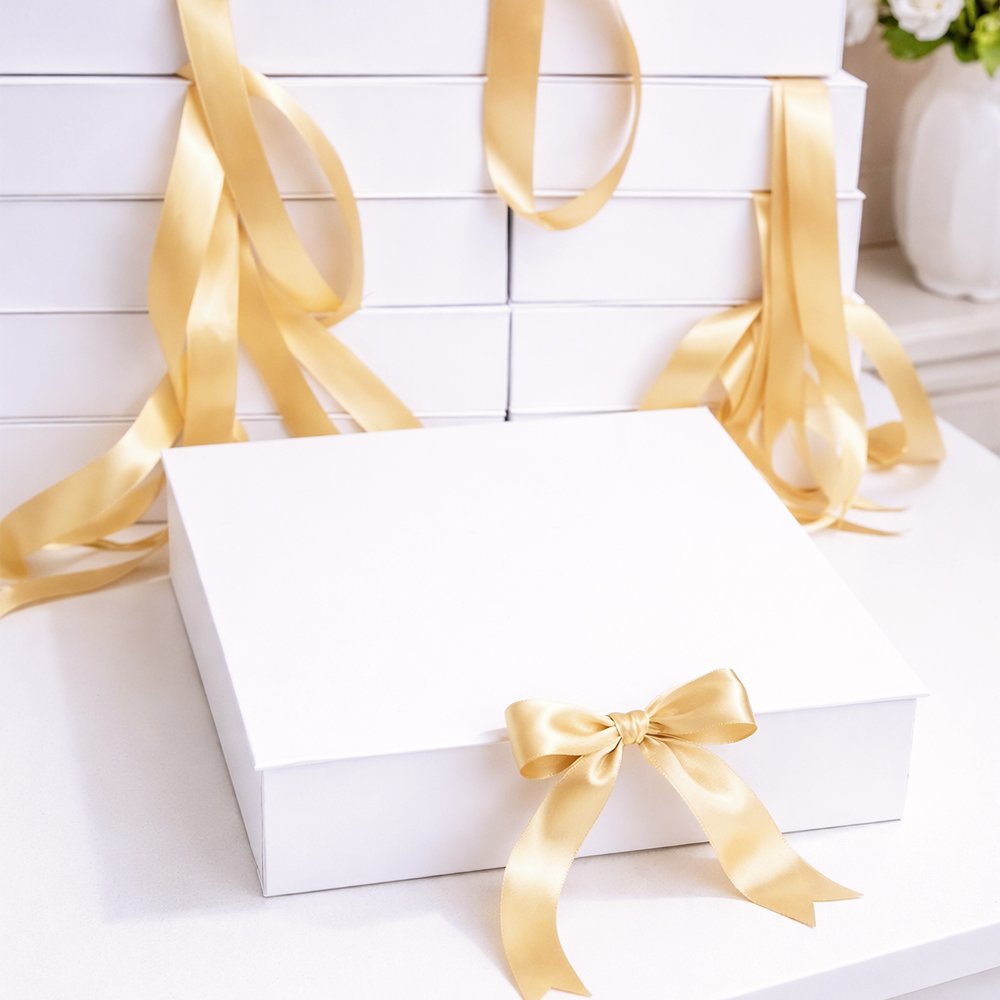 Zee Golden ribbon box Handmade with love, perfect for your brand packaging. White Matte Finishing.